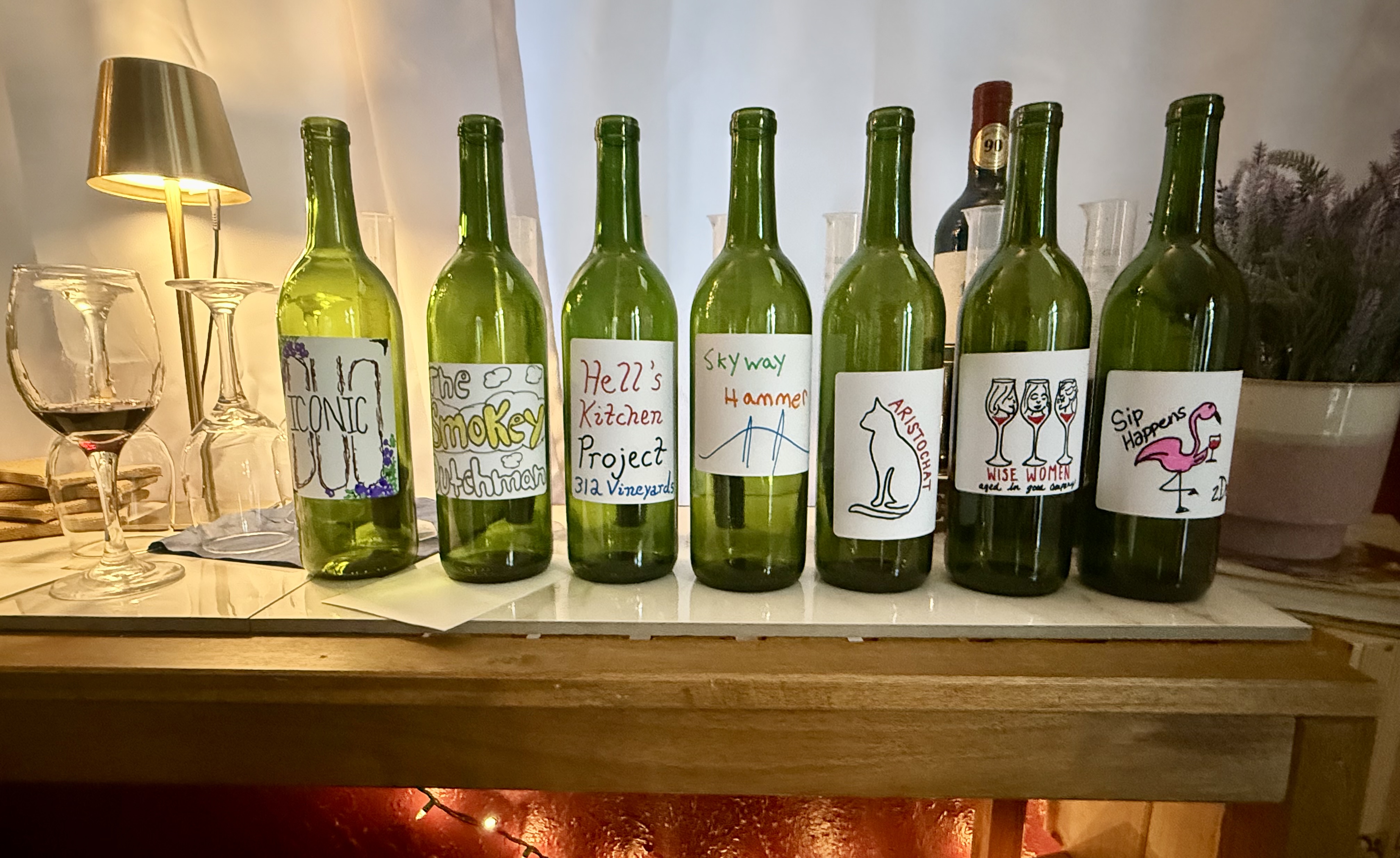 "Our blend is based on actors, like Scarlet Johansson because she is the lede lady," said one team, who named their wine "Hells Kitchen".