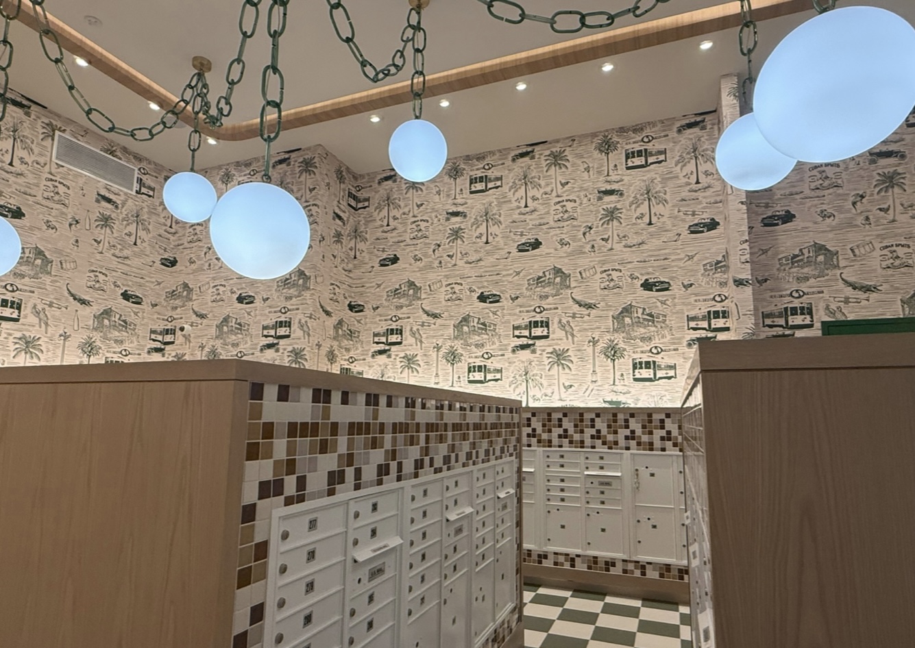 Even smaller spaces were designed with intention. The mailroom features custom wallpaper inspired by Ybor with unique patterns of the TECO Line Street Car, palm trees, trumpets and old vehicles.