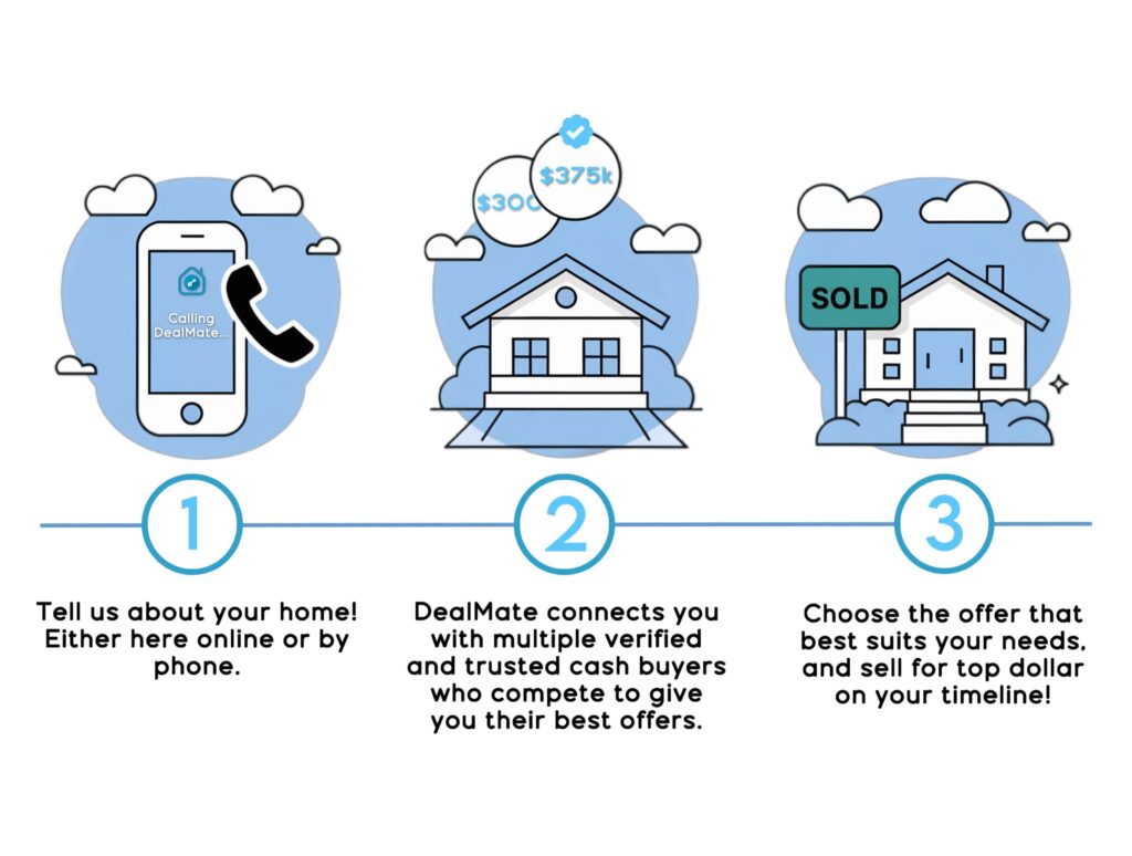 For many, the flexibility this provides is invaluable. After reviewing cash offers through DealMate, some sellers proceed with a fast cash sale, while others may choose to explore a traditional sale with a local real estate agent — and DealMate can help facilitate that as well.